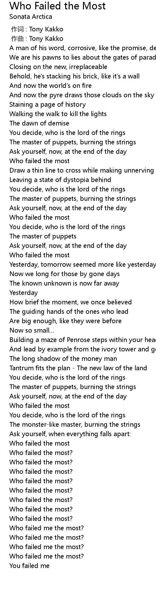 | [03:29.54] | Who failed me the most? |