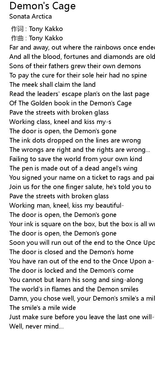 | [03:48.23] | The door is closed and the Demon' s home |