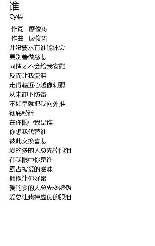 | [00:00.000] | 作词 : 廖俊涛 |
