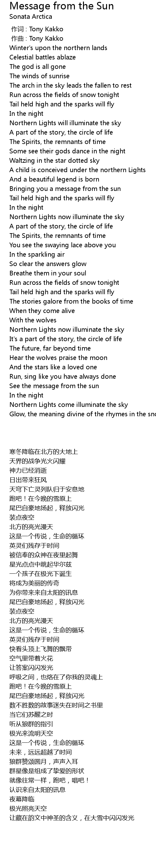 | [03:47.00] | Northern Lights come illuminate the sky |