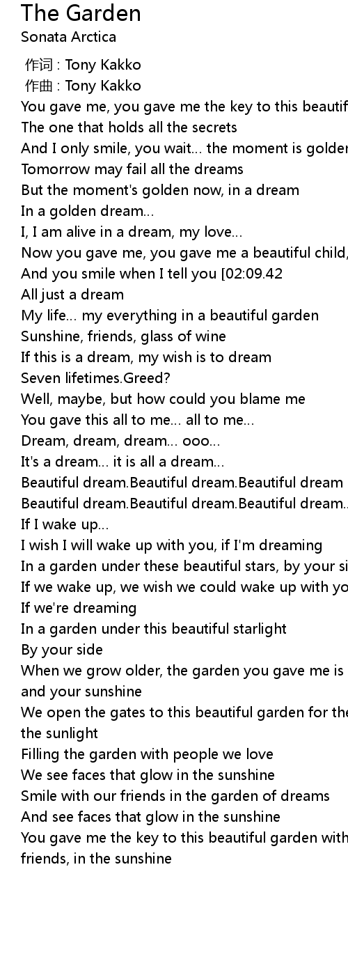| [02:18.42] | My life my everything in a beautiful garden |