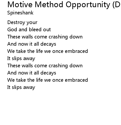 | Song | Motive Method Opportunity (Denial) |