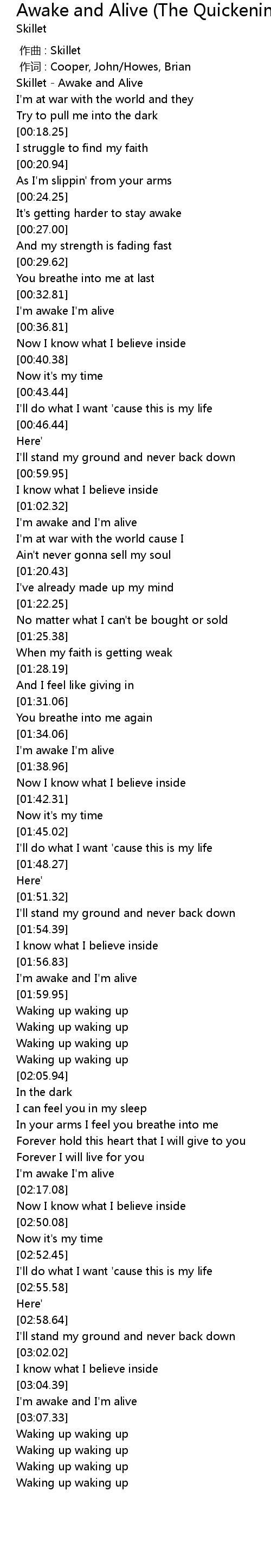 | [02:11.91] | I'm awake I'm alive |