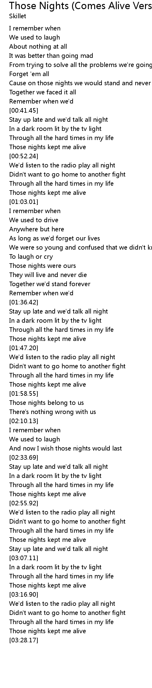 Those nights kept me alive |
