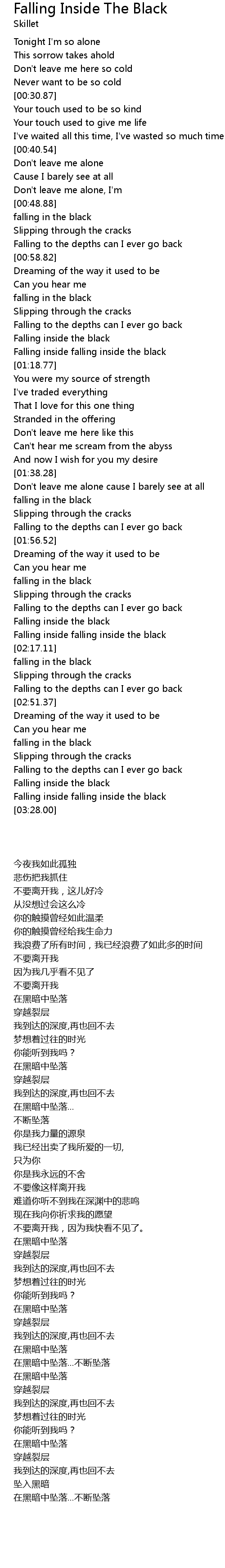 | [03:01.90] | Falling inside the black |