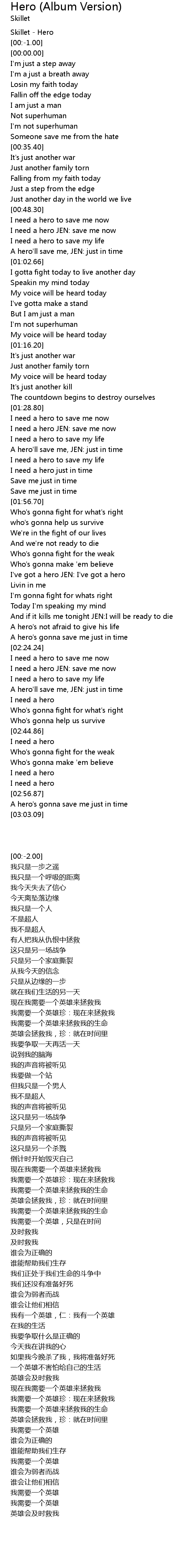 | [00:-2.00] | Skillet - Hero |