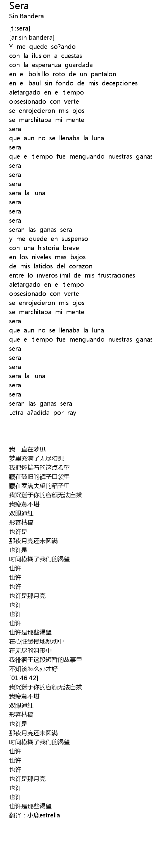 | [00:29.22] | en el bolsillo roto de un pantalon |