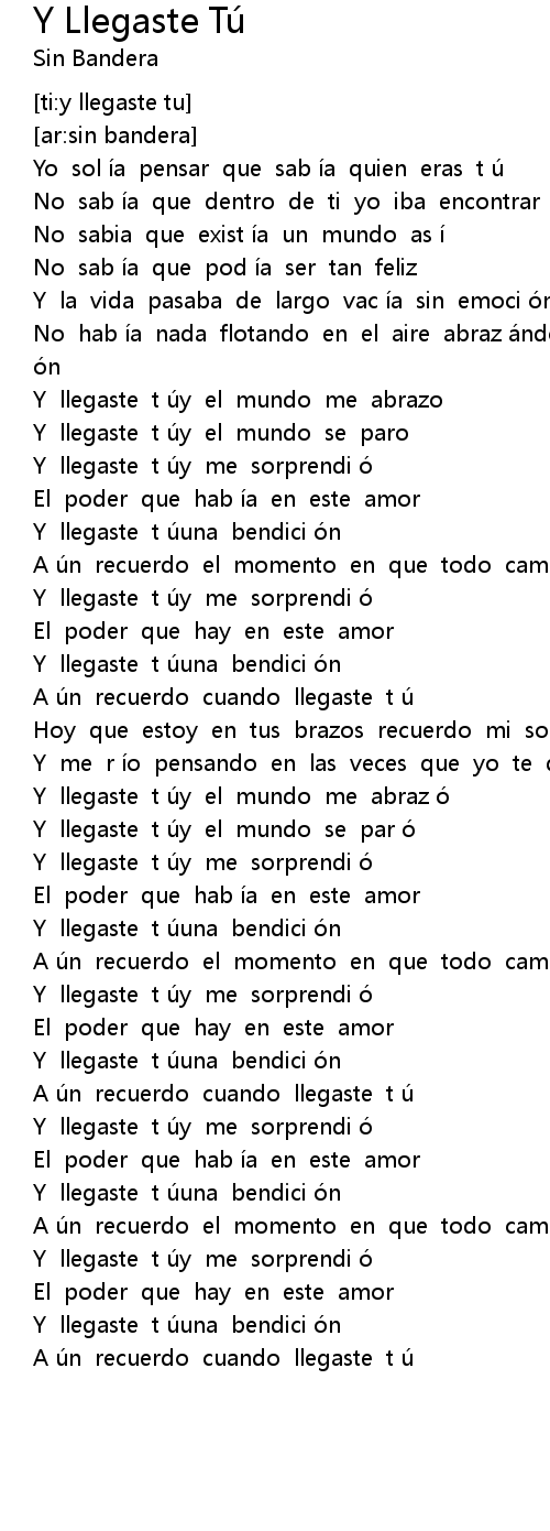 | [03:05.175] | Y llegaste t u y me sorprendi o |
