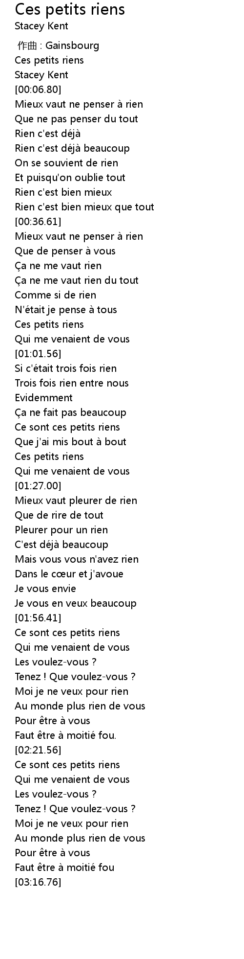 | [00:34.06] | Rien c'est bien mieux que tout |
