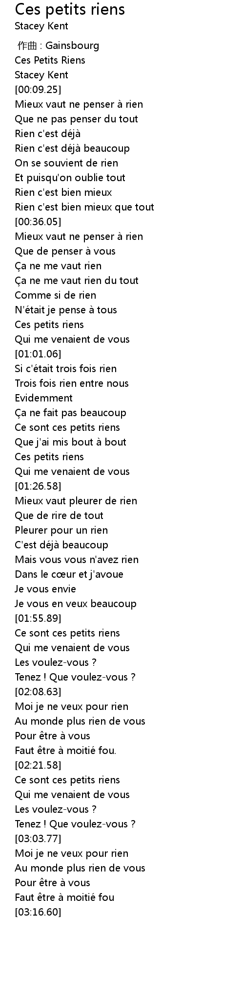 | [00:21.03] | Rien c'est déjà beaucoup |