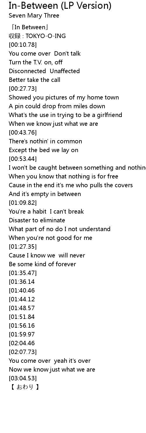 | [00:01.78] | 「In Between」 |