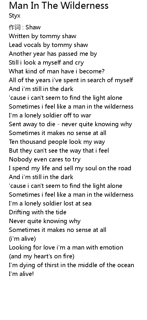 | Sometimes i feel like a man in the wilderness | |
