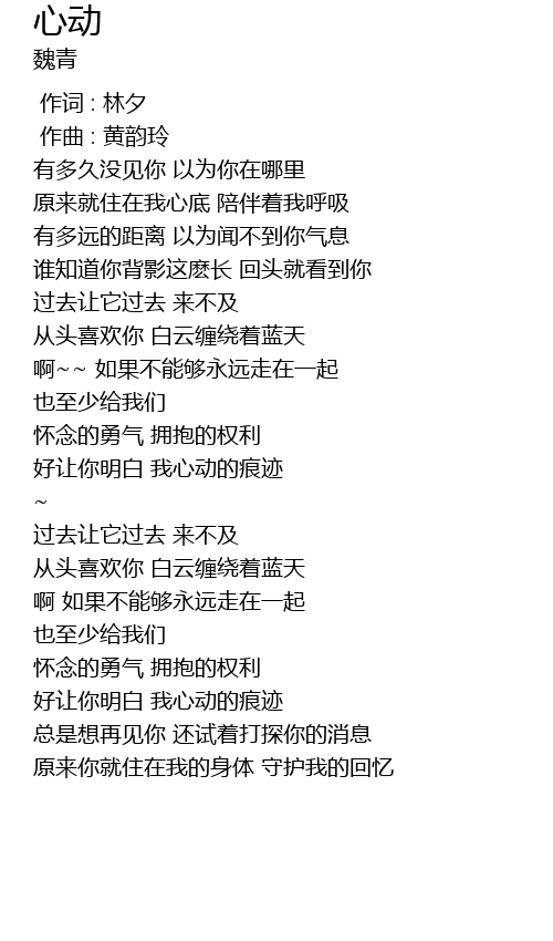 | [00:15.446] | yǒu duō jiǔ méi jiàn nǐ yǐ wéi nǐ zài nǎ lǐ |