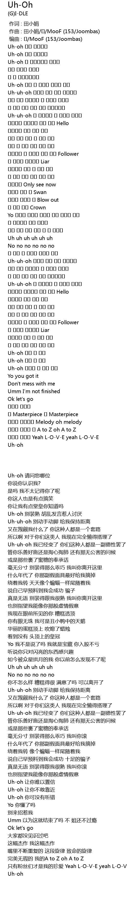 | [00:30.952] | Uh-oh 친한 척 말아줘 말하고 다녀 |