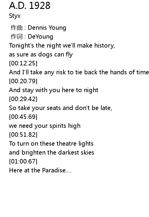 | [00:13.93] | And I'll take any risk to tie back the hands of time |