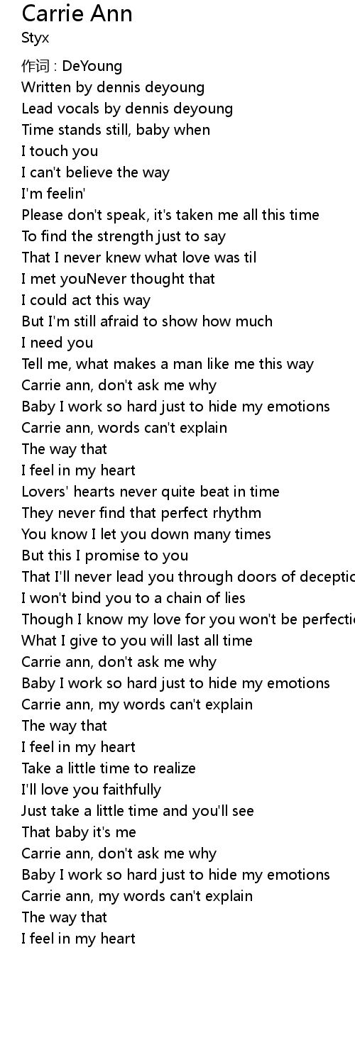 | Carrie ann, my words can' t explain | |