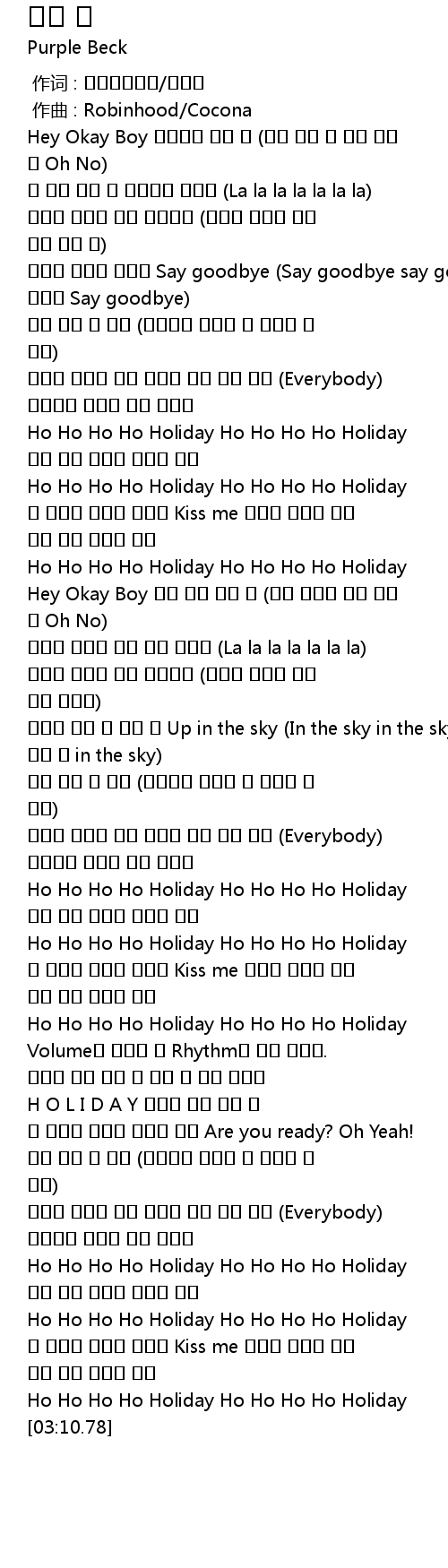 | [00:46.70] | Ho Ho Ho Ho Holiday Ho Ho Ho Ho Holiday |