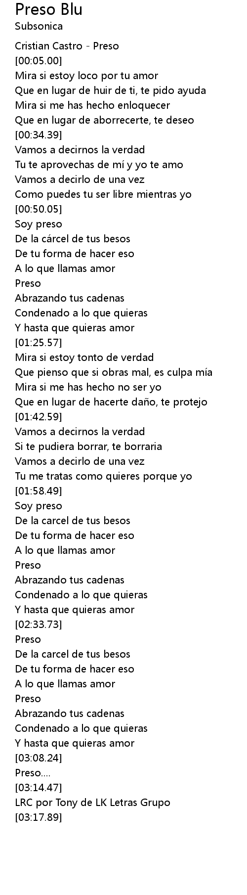 | [00:01.00] | Cristian Castro Preso |