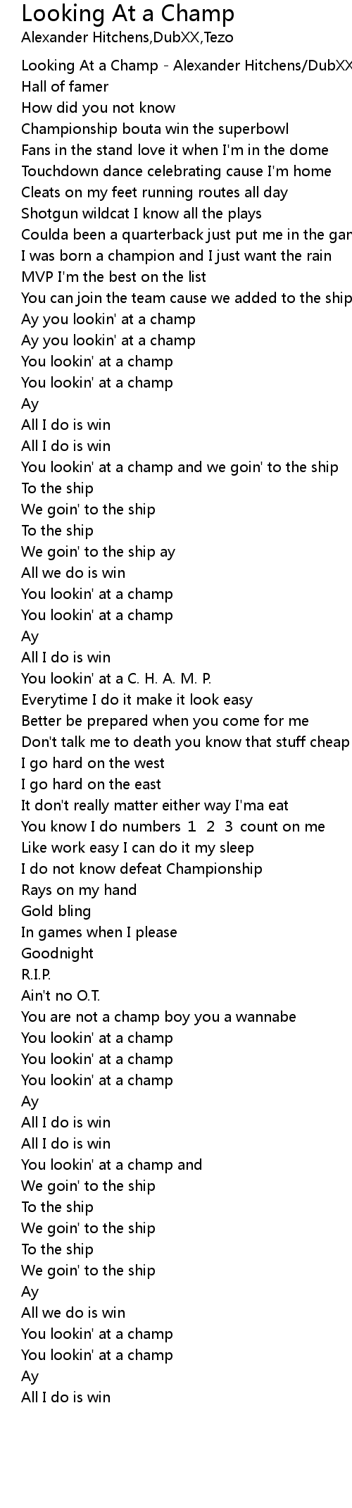 | [00:00.00] | Looking At a Champ Alexander Hitchens DubXX Tezo |