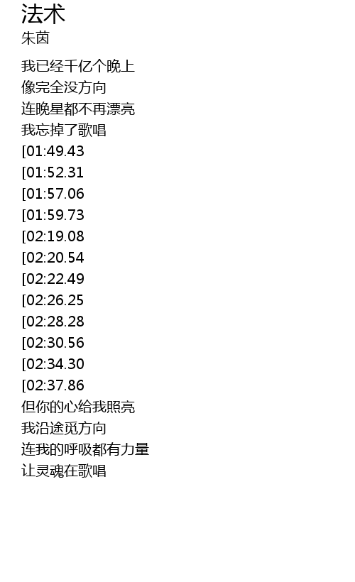 | [00:58.42][02:19.08] | rú biàn fǎ shù |