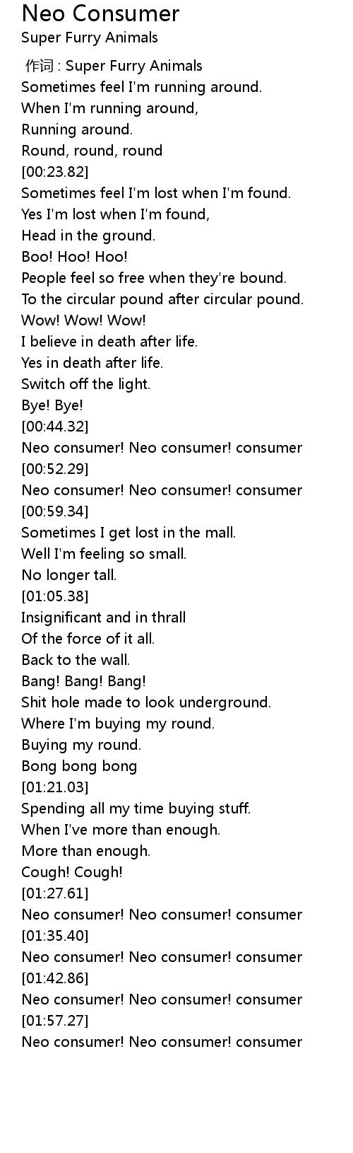 | [01:31.52] | Neo consumer! Neo consumer! consumer |