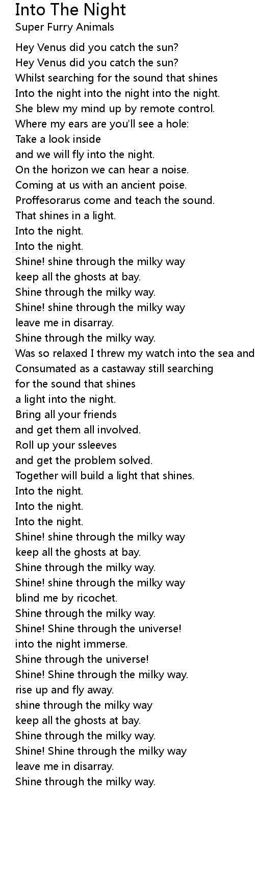 into the night immerse. |