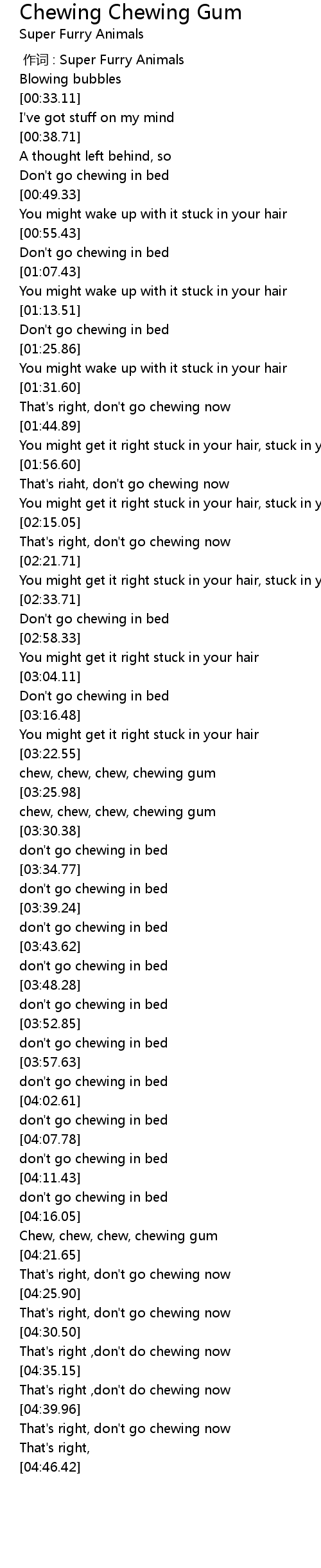 | [04:19.06] | Chew, chew, chew, chewing gum |