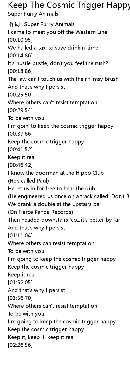 | [00:38.50] | Keep the cosmic trigger happy |