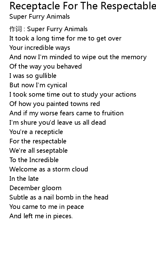 | Song | Receptacle For The Respectable |