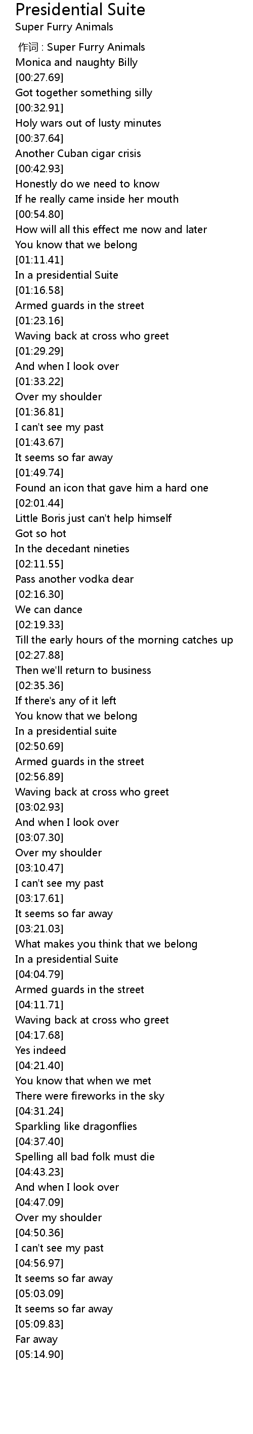 | [04:00.56] | In a presidential Suite |