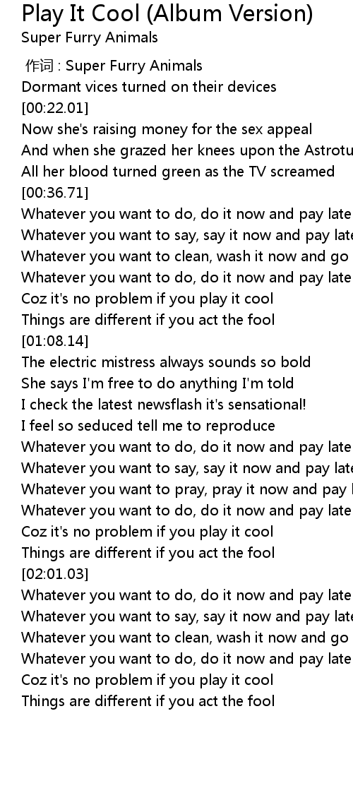| [00:57.08] | Coz it's no problem if you play it cool |