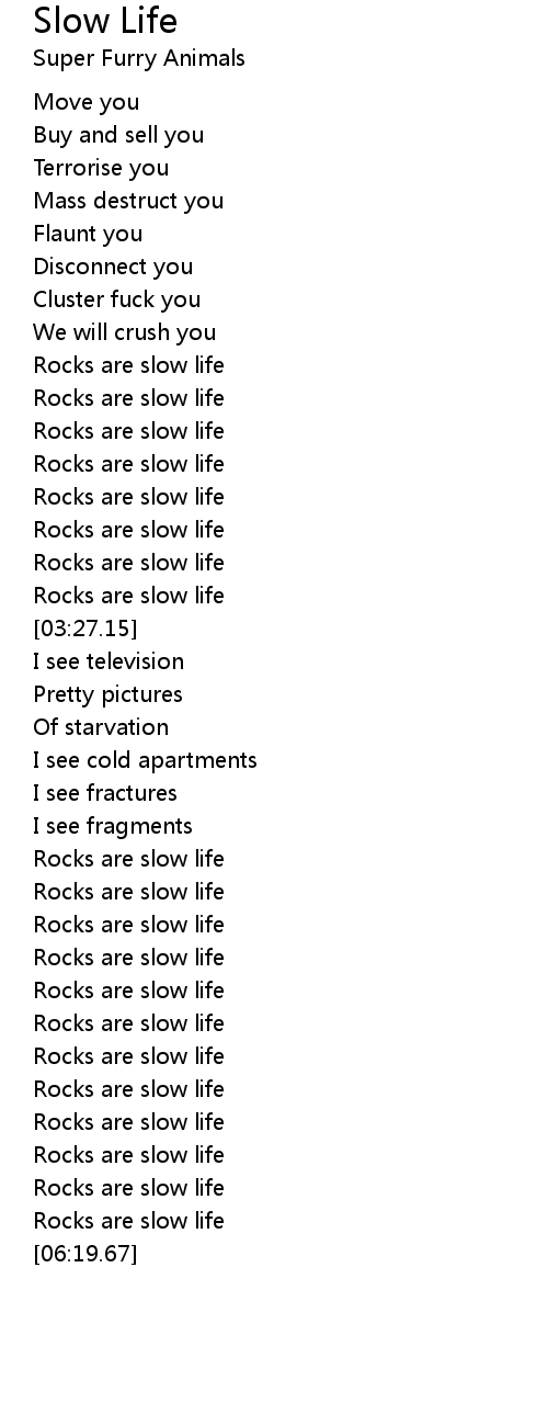 | [03:21.96] | Rocks are slow life |
