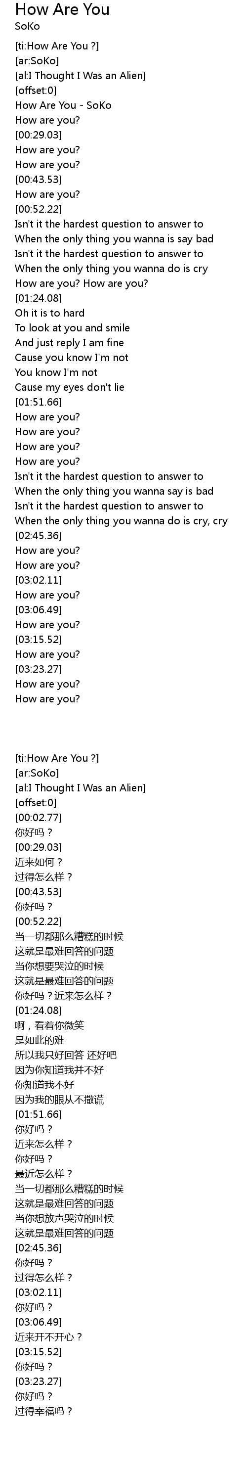 How Are You - SoKo |