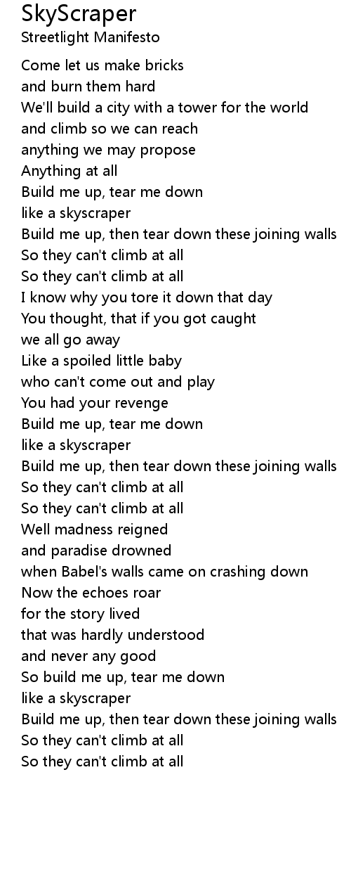 Build me up, tear me down |