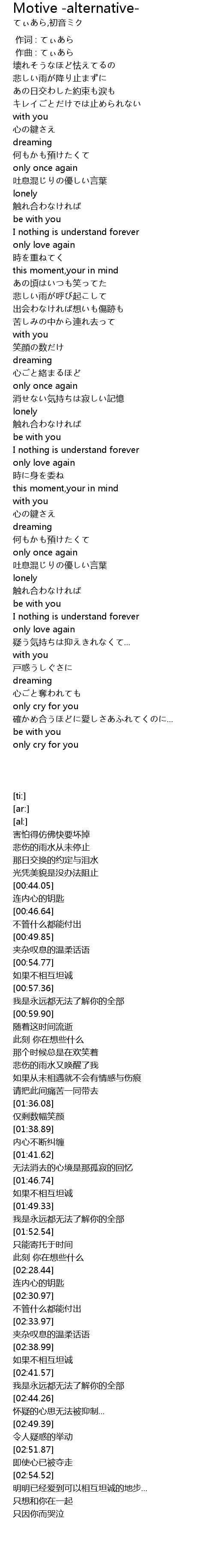 | [02:38.99] | lonely |