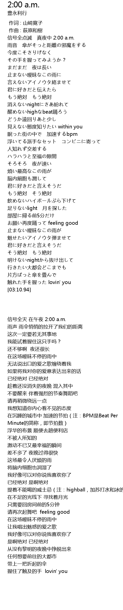 | [00:14.85] | 信号全点滅 真夜中 2:00 a.m. |