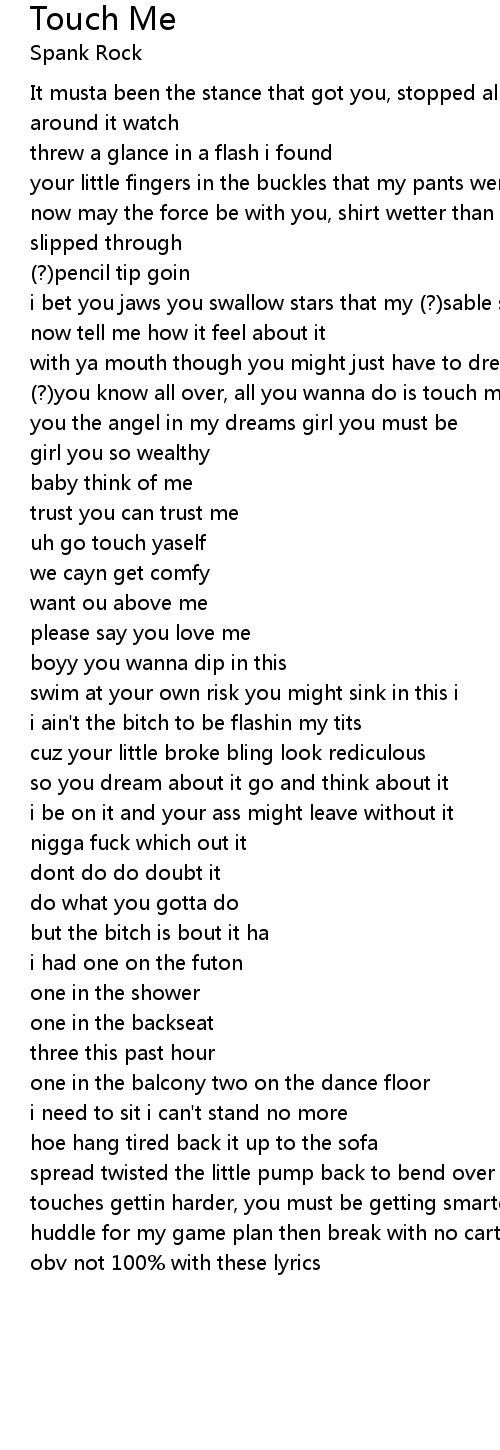(?)you know all over, all you wanna do is touch me |