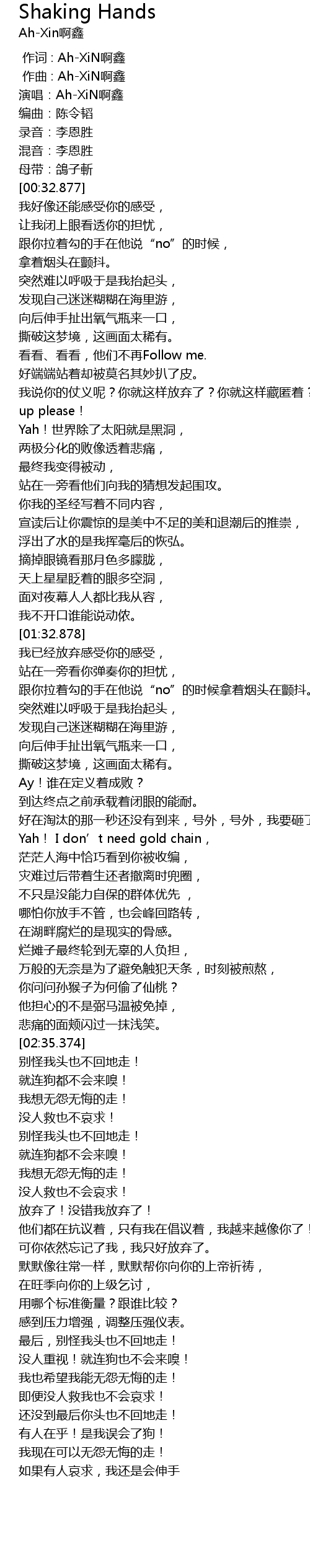 | [00:00.000] | 作词 : Ah-XiN啊鑫 |