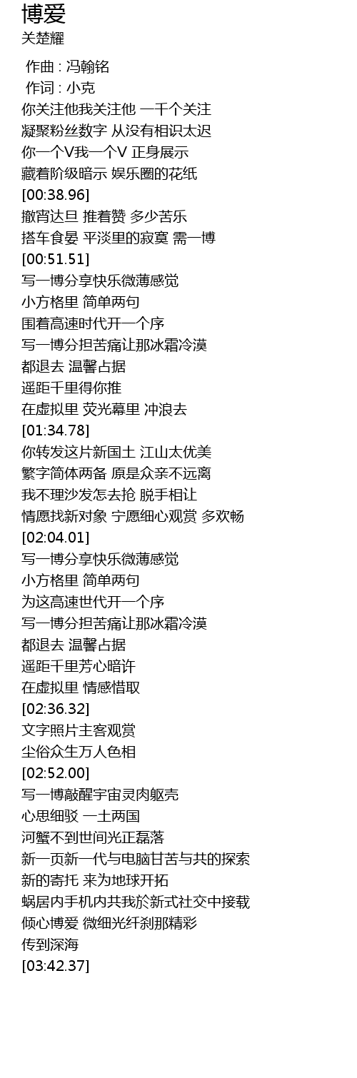| [02:04.61] | 写一博分享快乐微薄感觉 |