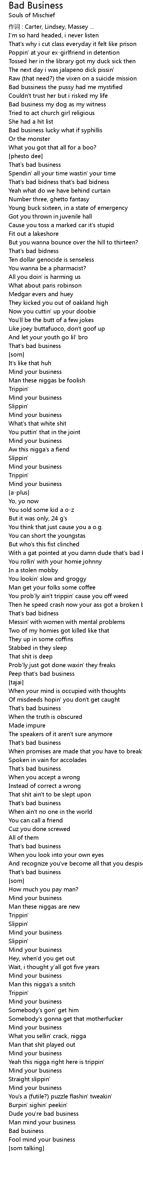 | Dude you're bad business | |