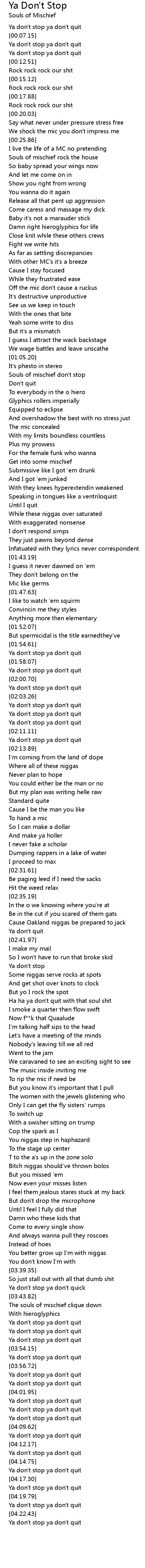 Ya don't stop ya don't quick |