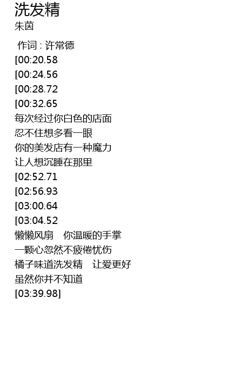 | [01:32.61][00:28.72] | 我喜欢洗发精 芳香的泡� |