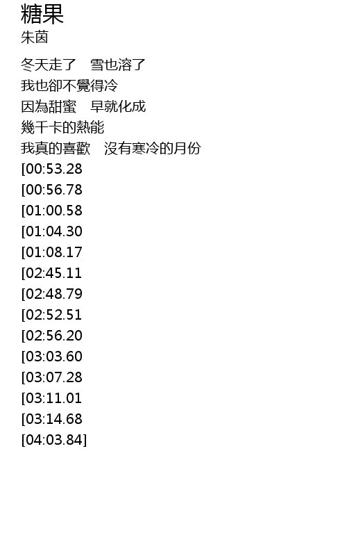 | [03:40.98][03:03.60][01:34.05] | 你的愛情像糖果 |