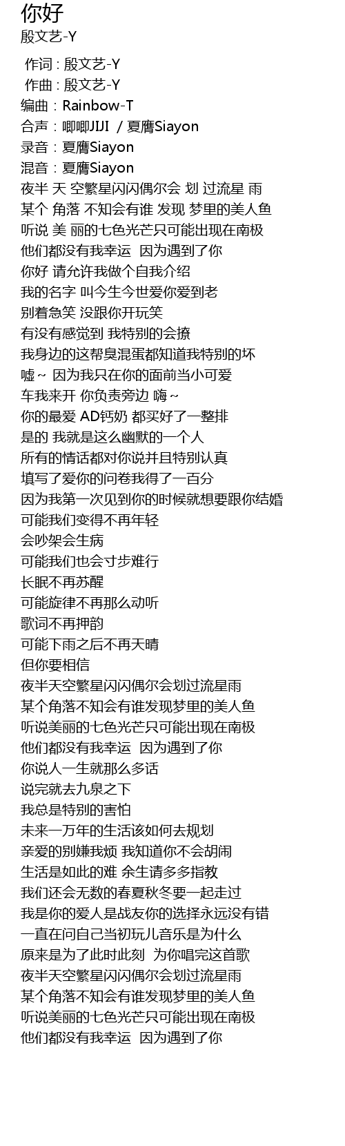 | [00:00.000] | 作词 : 殷文艺-Y |