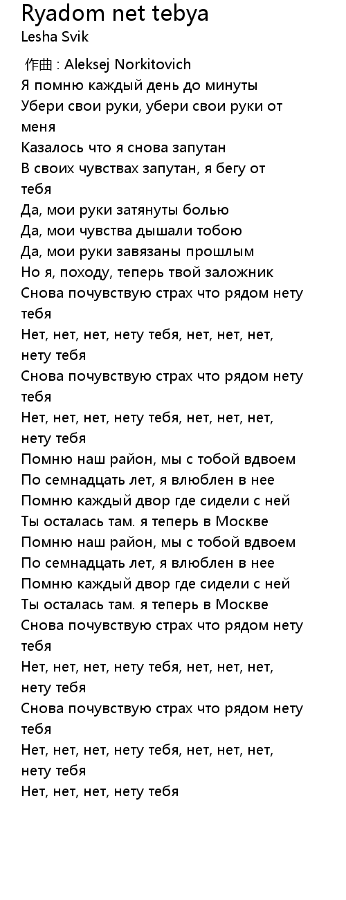 Нет, нет, нет, нету тебя, нет, нет, нет, нету тебя |