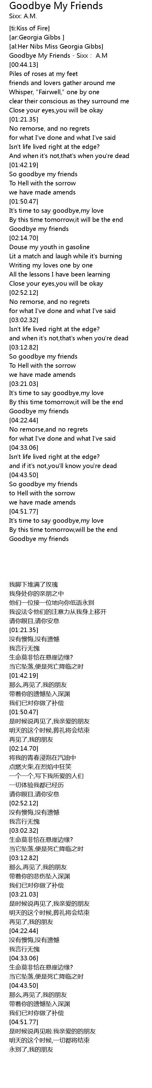 | [03:31.90] | Goodbye my friends |