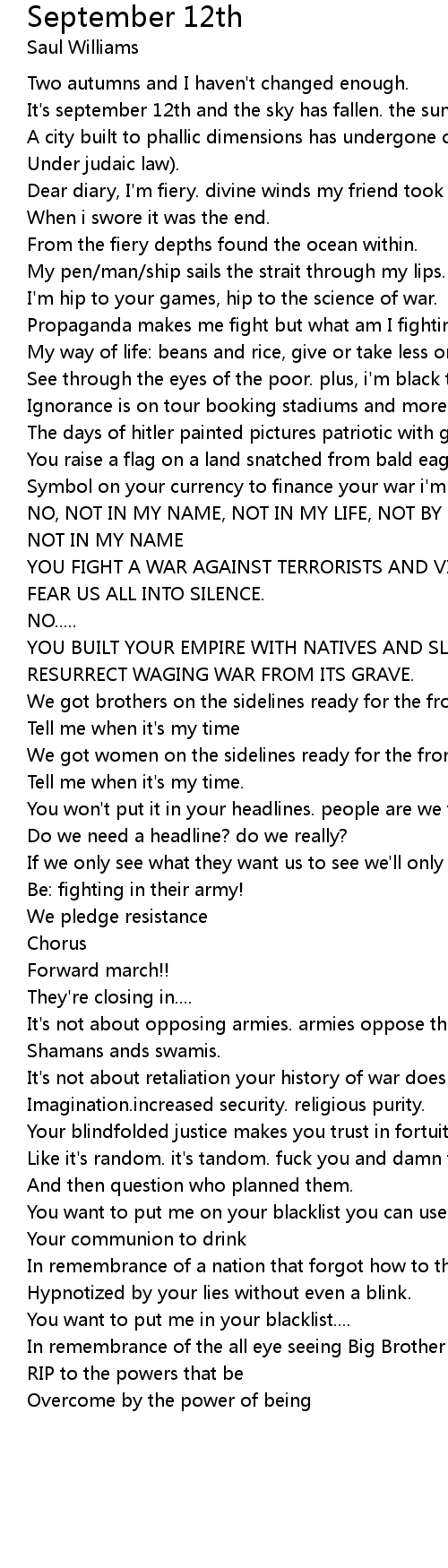 It's september 12th and the sky has fallen. the sun has risen. |