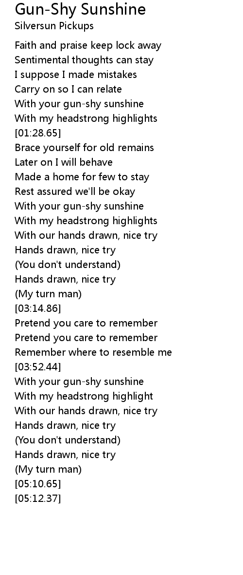 With your gun-shy sunshine |