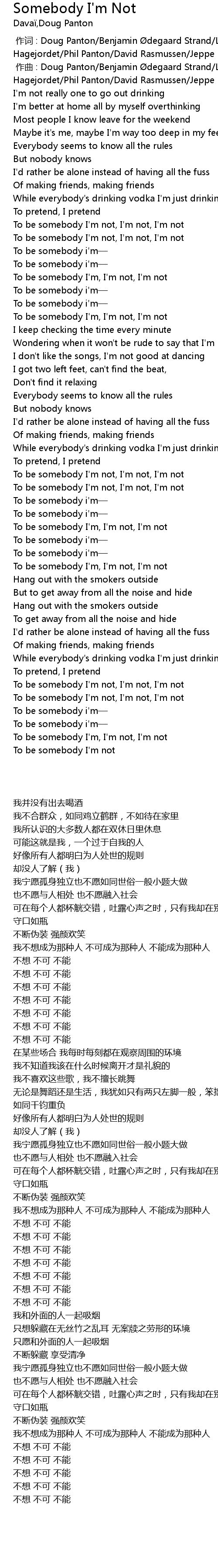 | [00:52.18] | To be somebody I' m not, I' m not, I' m not |