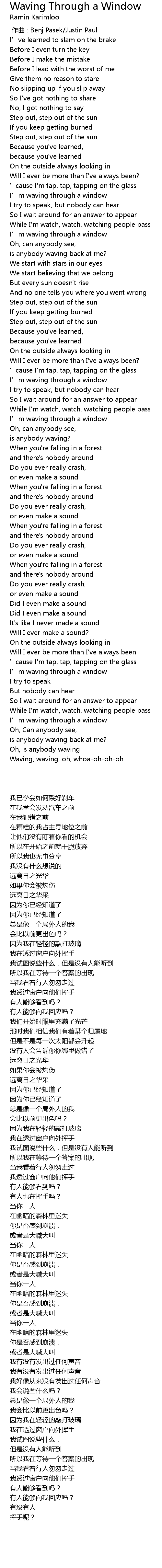 | [00:59.950] | I' m waving through a window |